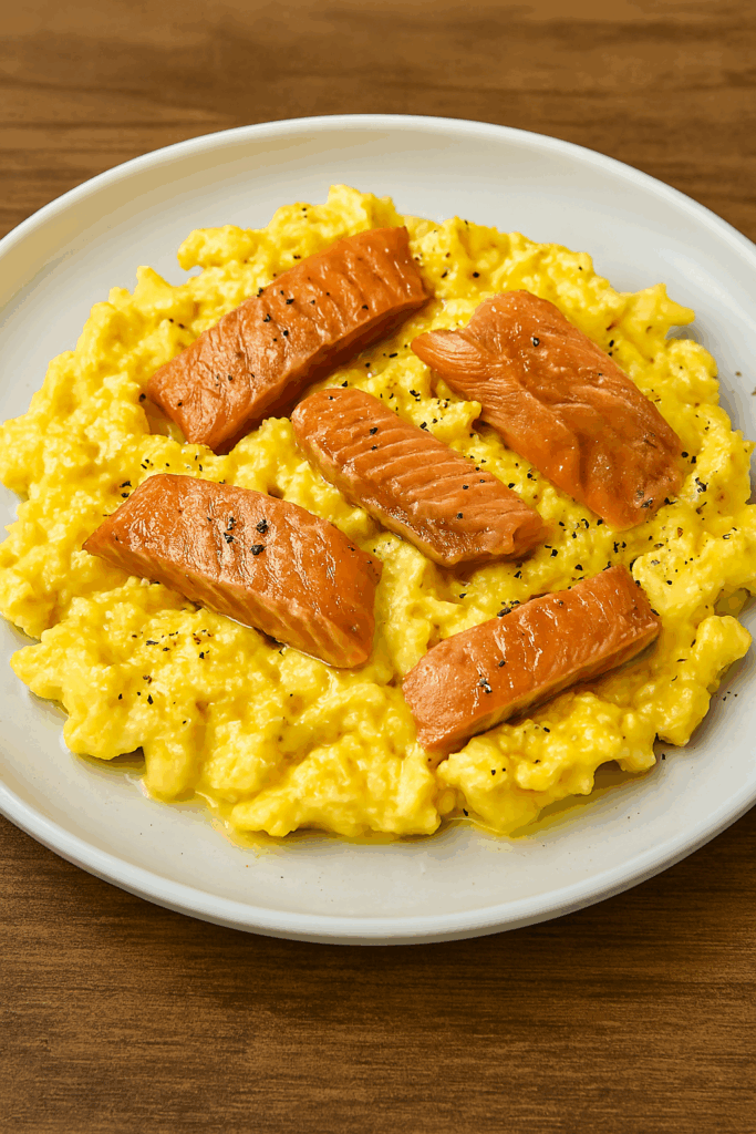- Melt butter in a pan, pour in eggs, and gently scramble.