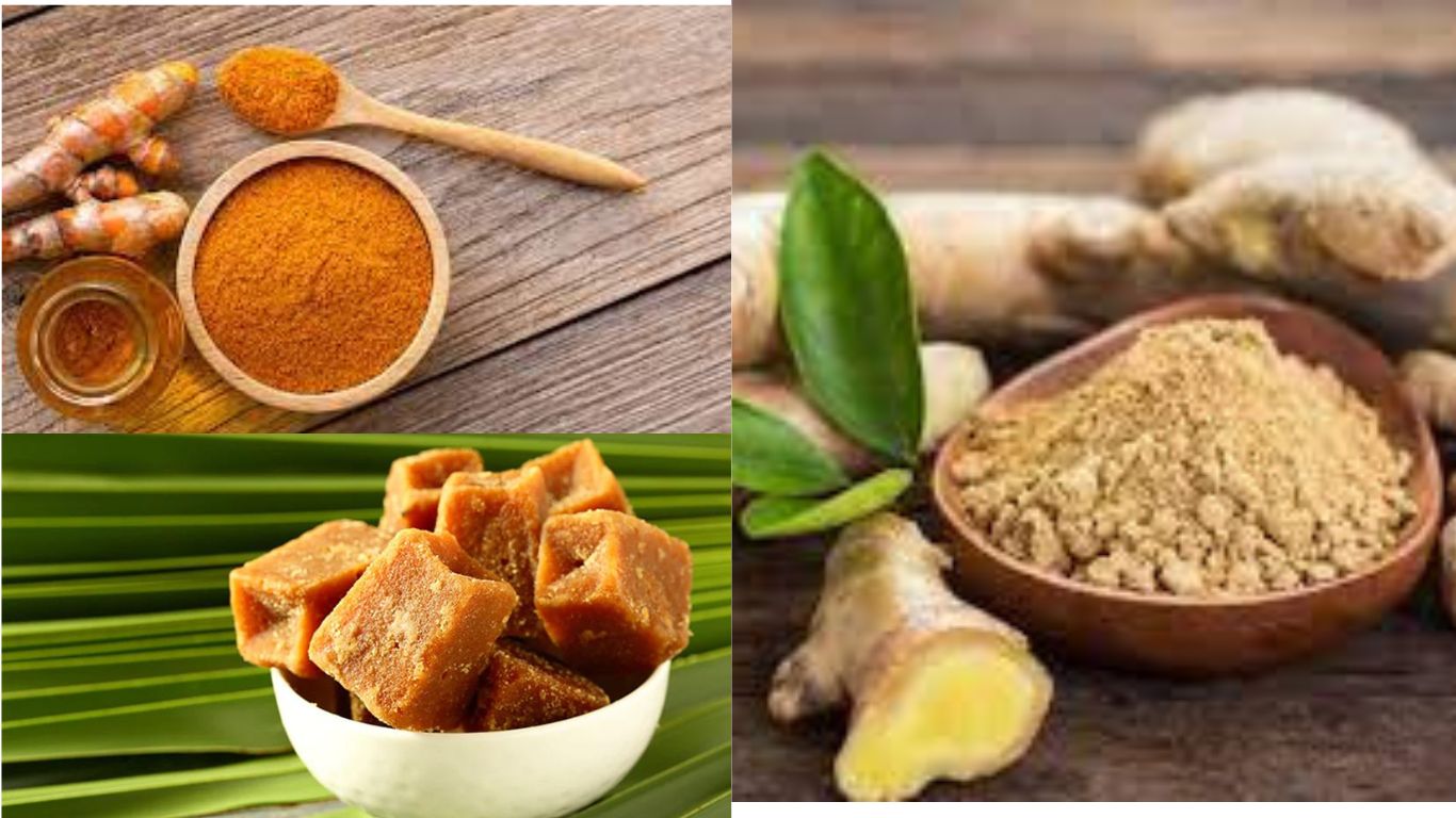 c. Combination of Jaggery, Ginger powder and Turmeric