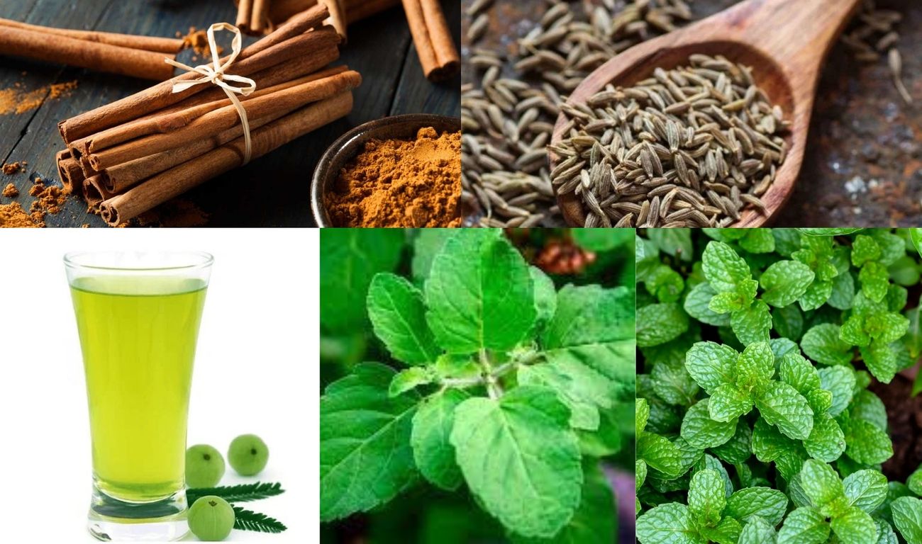 a. Cinnamon, Cumin, Gooseberry Juice, Holy Basil and Mint leaves