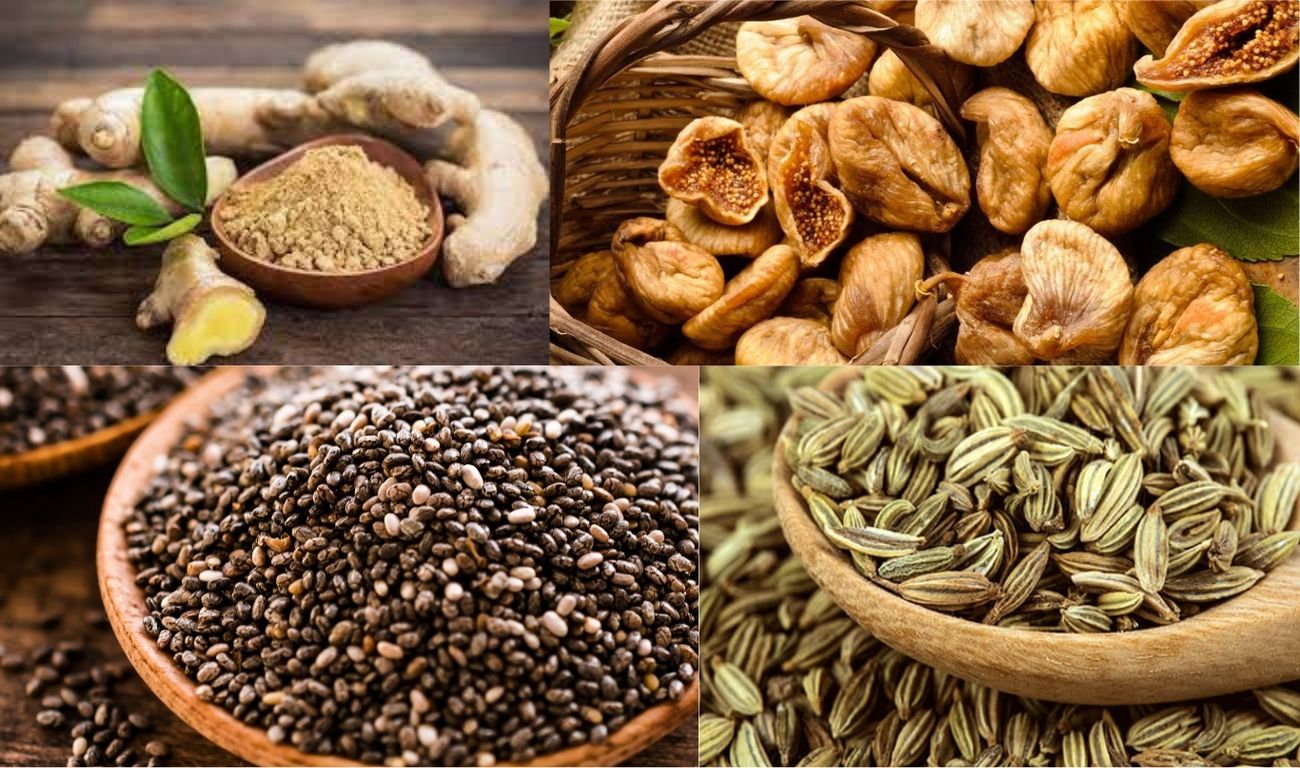 a. Fennel seeds, Dry ginger powder, chia seeds and dried figs