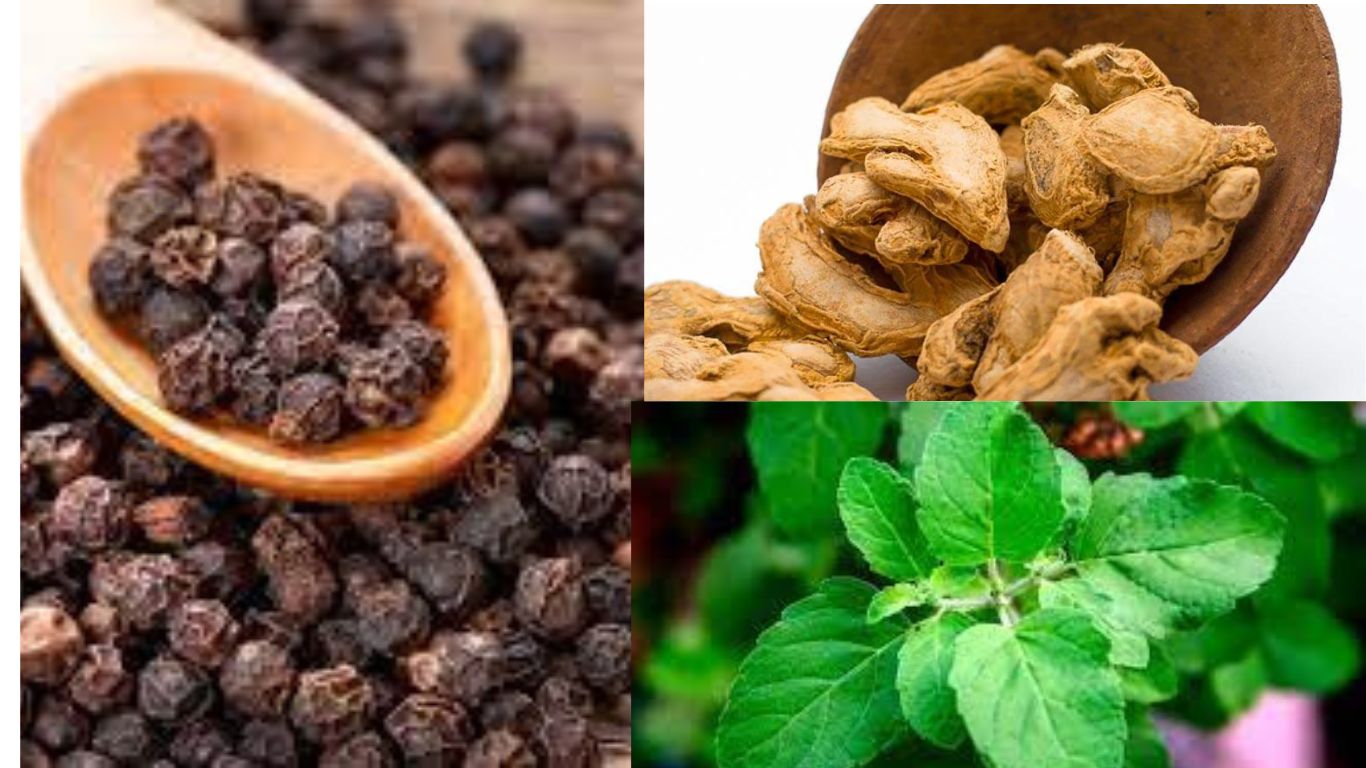| a. Combination of Dry Ginger, Black Pepper, and Holy Basil | Dry ginger, black pepper, holy basil, water, optional: jaggery | Reduces inflammation, boosts antibody production |